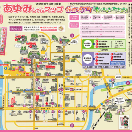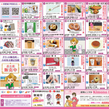 飫肥城下町保存会では、飫肥城観光をエスコートするために、『あゆみちゃんマップ』を準備してお待ちしています。